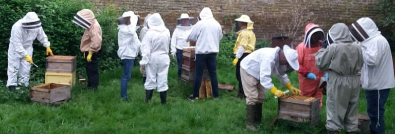 Weekly sessions are held every Friday evening at our Twickenham training apiary where you try beekeeping for yourself. The hands-on sessions incorporate topics and techniques that mirror what a beekeeper would be required to do with their own apiary and are supported with regular talks, demonstrations and discussions. We will cover use of hive tools & equipment, safe handling of bees, swarm prevention, and Queen marking amongst many other things, with the guidance and support of experienced beekeepers.